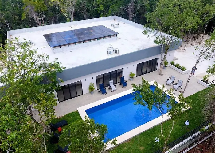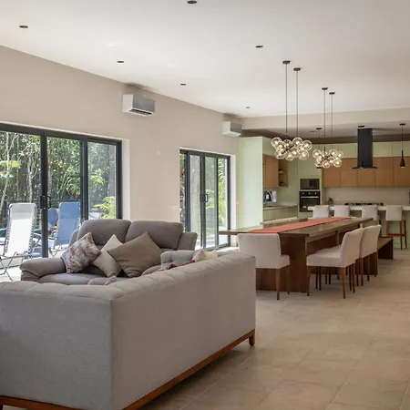 Villa Kiin Ha - Luxurious 5-Br Villa With Swim-Up Pool ligger 2 km fra Mayan Bee Sanctuary og repræsenterer en 5 værelsers indkvartering med en terrasse. Villa har 5 badeværelser og et fuldt udstyret køkken.